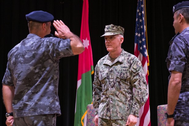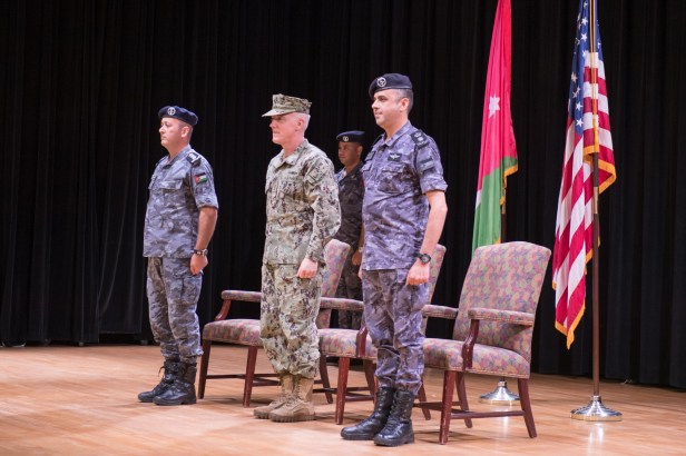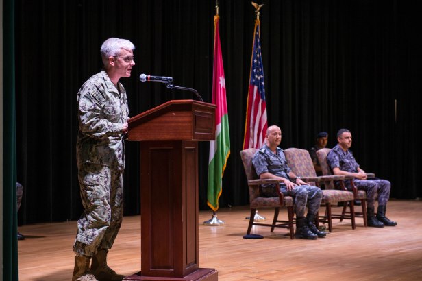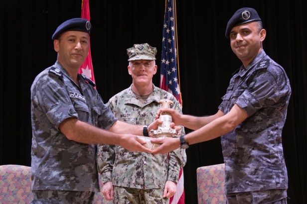 كما قال العقيد بحري Malloy في كلمة ألقاها : ” كما نقول وداعاً لقائد عظيم ، فإننا نرحّب بآخَر . و يسعدني أن أرحّب بالمقدم بحري عمر العودات ، كذلك من البحرية الملكية الأردنية . إنني أعلم أنك قمت بتمثيل الأردن بفخر في العديد من المهام الدولية السابقة ،