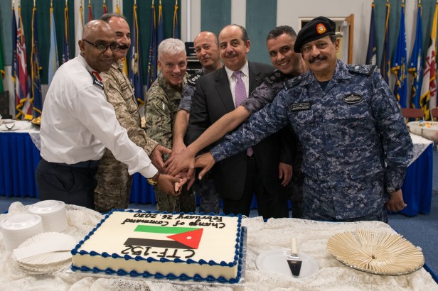 بعد النجاح لمدة ستة أشهر في القيادة ، قام العقيد بحري عادل المعني ، من البحرية الملكية الأردنية ، بتمرير قيادة قوة الواجب المختلطة 152 للمقدم بحري عمر العودات ، الذي ينتمي كذلك إلى البحرية الملكية الأردنية . و قد حضر الاحتفال ضيوف مميَّزون برئاسة قائد القوات البحرية المشتركة CMF ، الفريق بحري ” جيمس مَالُويْ ” \ James Malloy من بحرية الولايات المتحدة الأمريكية .