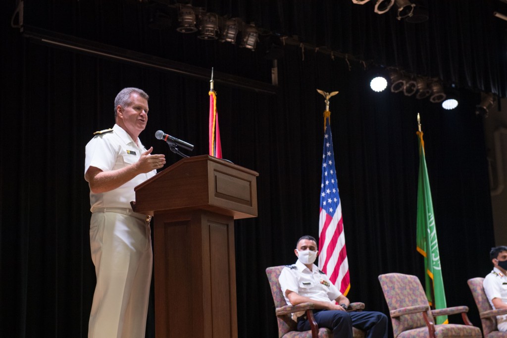 “He took the helm with tremendous enthusiasm, and that enthusiasm and that skill was needed at the time when he faced the twin menace of our operations at sea in conjunction with the threat of Covid-19. His character, his leadership, his intellect, rose to every occasion when CTF 152 adapted seamlessly to the new conditions and circumstances.”