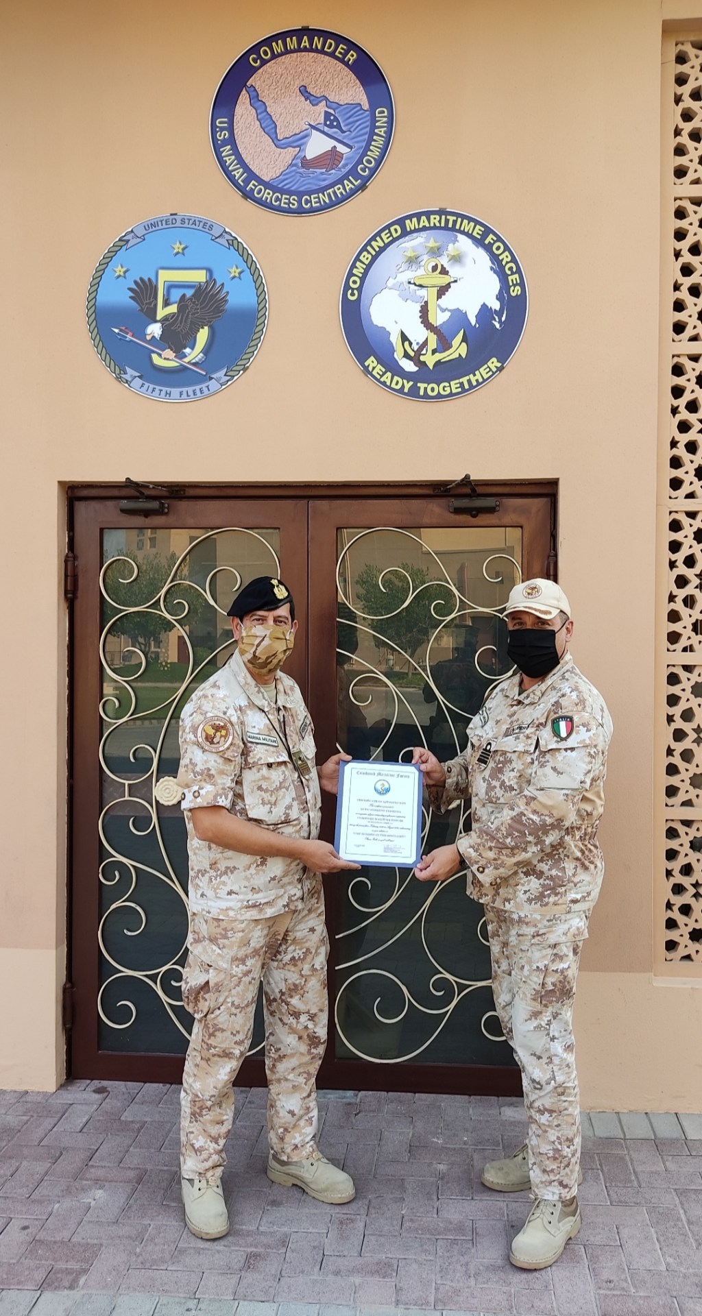 CMF’s Command Master Chief, Lucas Pullen from the US Coast Guard, said: “MCPO Frisenda has been an amazing addition to the CMF “Chief’s Mess”. In a very senior level organization with predominately officers, he has distinguished himself as a very knowledgeable and determined individual who leads through actions.”
