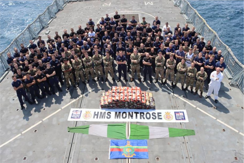 Sailors and Royal Marines on board HMS Montrose, a Royal Navy Type 23 Frigate, captured the drugs from a suspicious vessel during a counter-narcotics operation in the Arabian Sea.