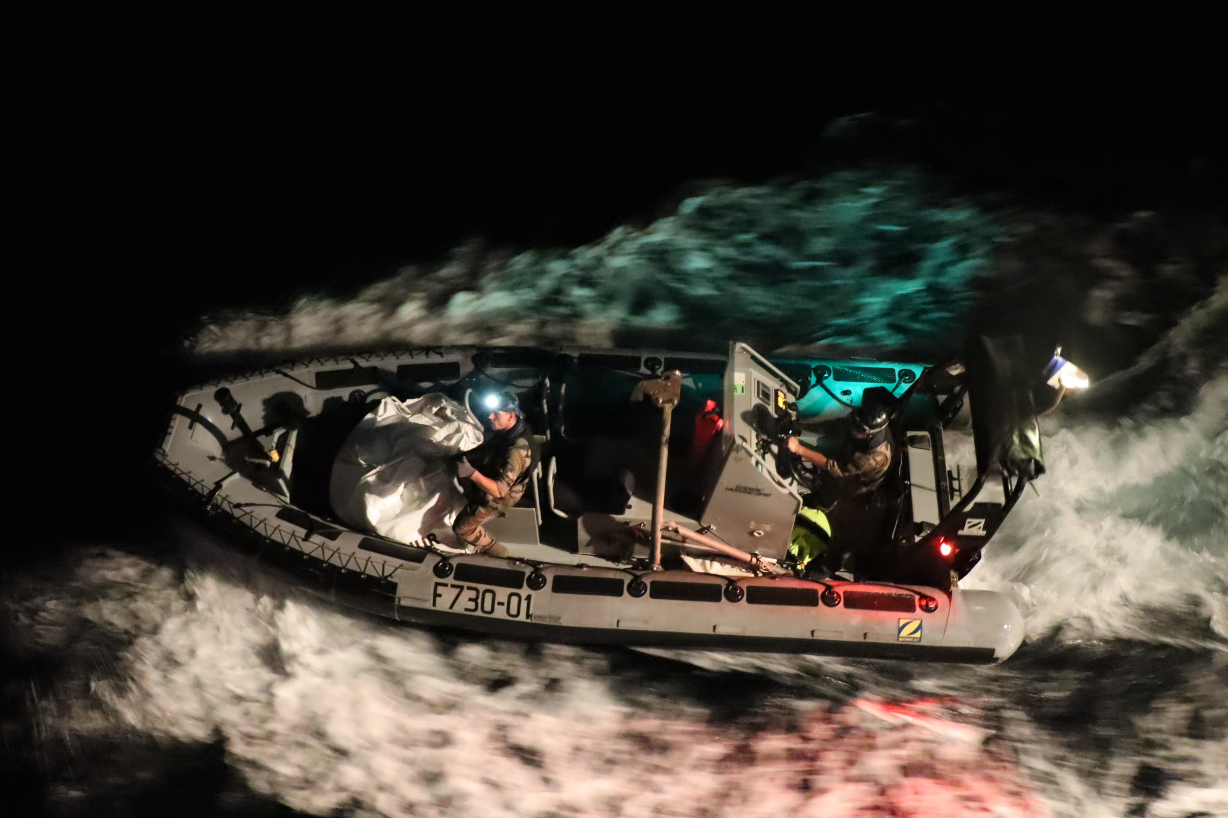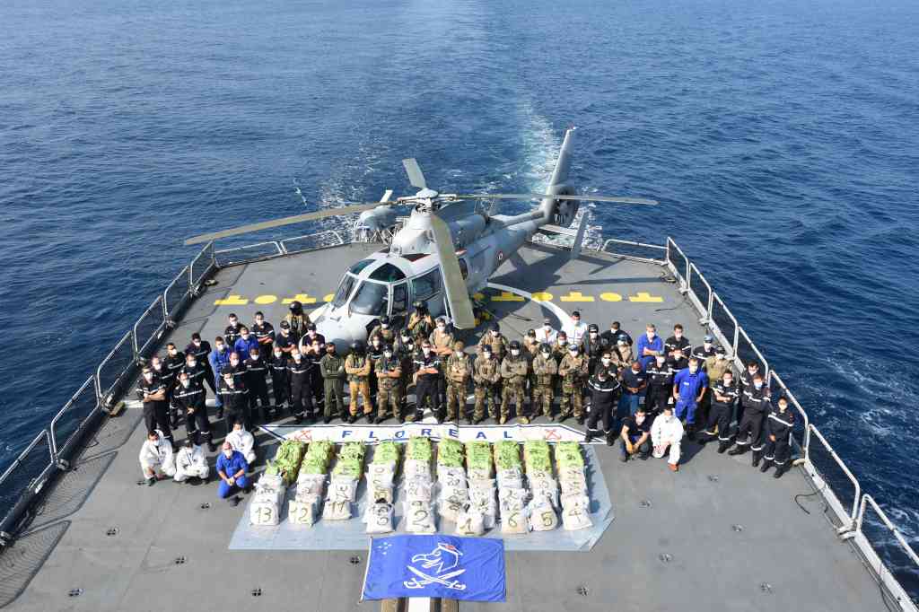 A team of French sailors conducted the boarding of the suspicious vessel, which was sailing along a route known for transiting drugs.
