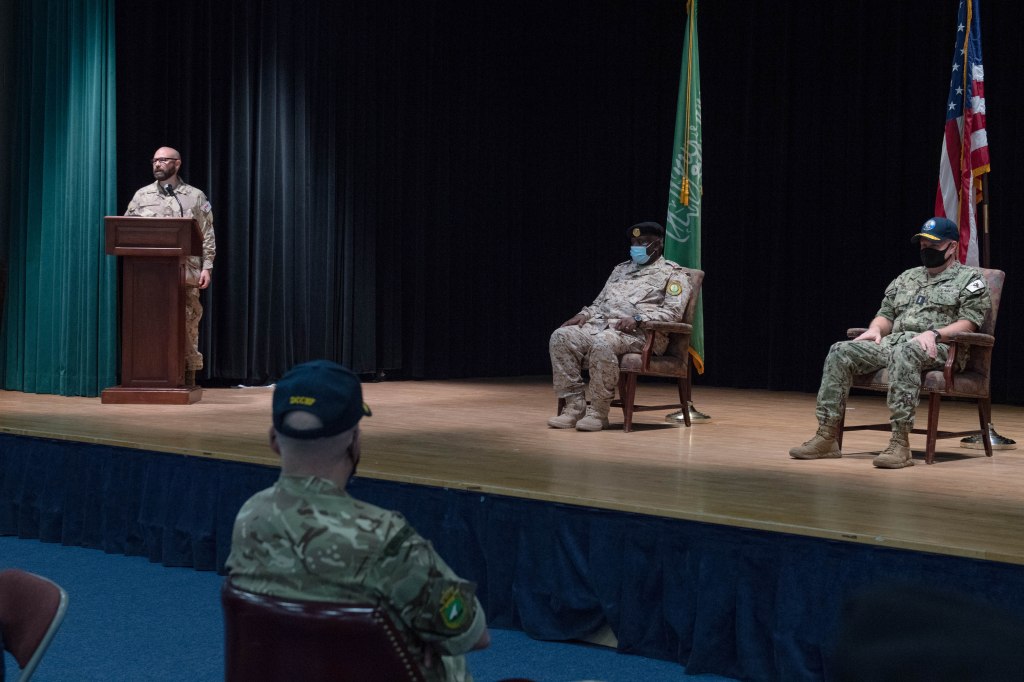 Attending the changeover ceremony were distinguished visitors including Vice Admiral Fahd Al Ghofaily, Royal Saudi Naval Forces Commander, and representatives of KSA, CAN, BAH, AUS, UK and JOR, as well as numerous senior officers from coalition militaries.