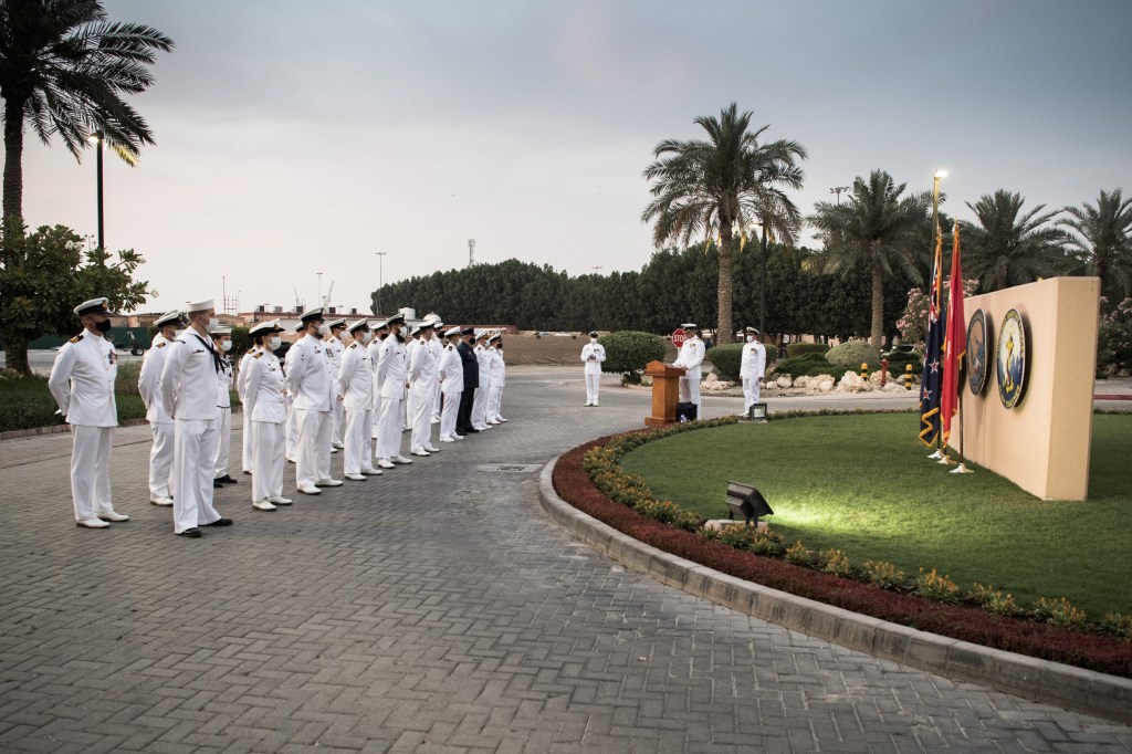 On April 25, 2021, Combined Maritime Forces (CMF) members representing Australia, New Zealand and Turkey, as well representatives from other CMF coalition nations, commemorated the 106th anniversary of Anzac Day with a dawn service conducted at CMF Headquarters, in Bahrain.