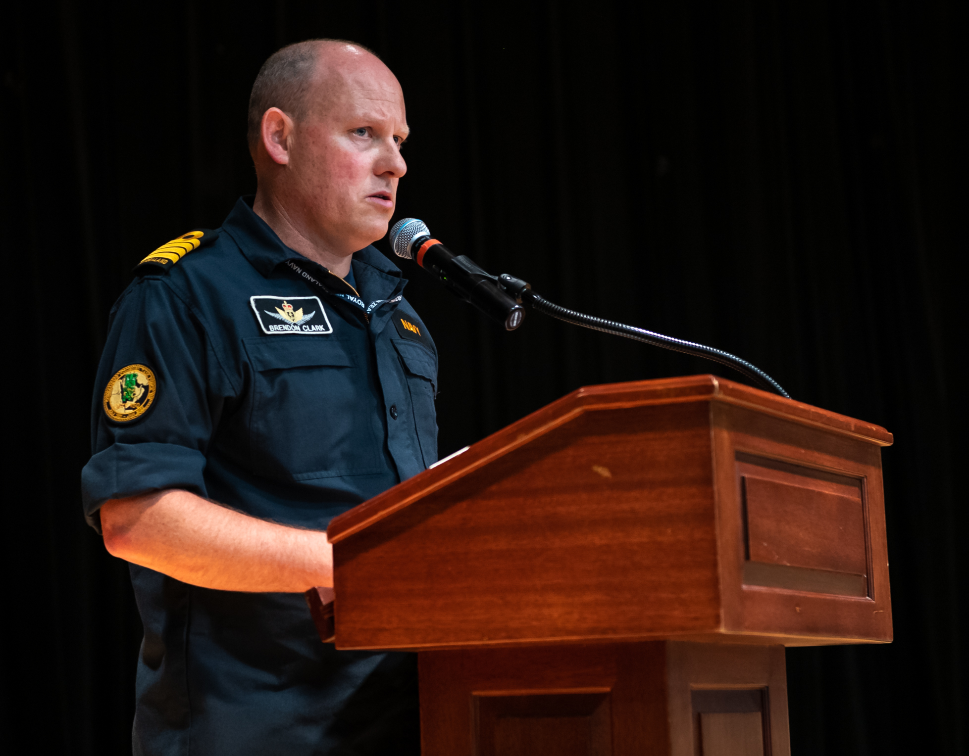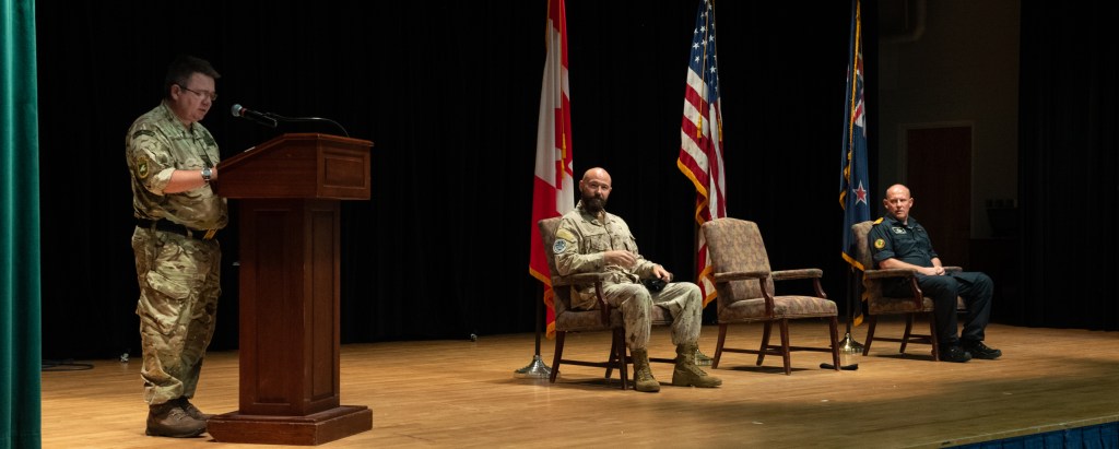 MANAMA, Bahrain–Commodore Dan Charlebois of the Royal Canadian Navy turned over command of Combined Task Force 150 (CTF-150) to Capt. Brendon Clark of the Royal New Zealand Navy in a ceremony at Naval Support Activity Bahrain, July 15.
