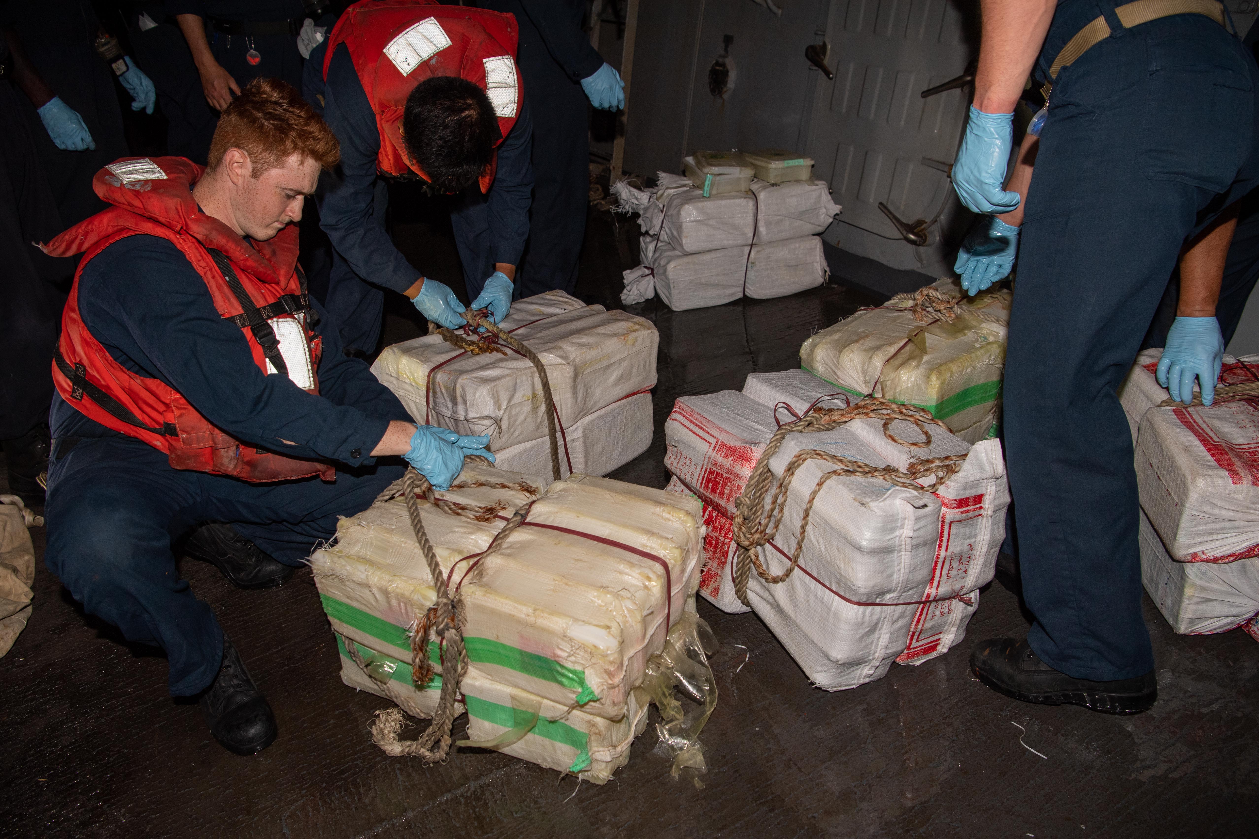 A U.S. Coast Guard interdiction team from USS Momsen (DDG 92) discovered the illegal narcotics during a flag verification boarding in accordance with international law. The confiscated drugs and fishing vessel remain in U.S. custody.