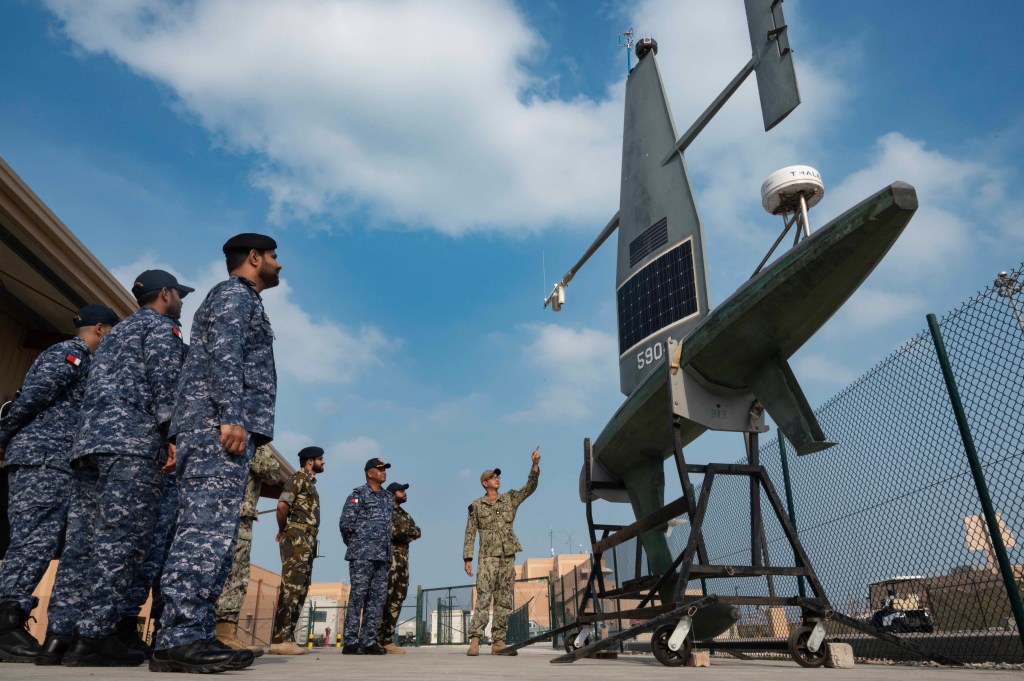 Participating forces met ashore Jan. 23 at the U.S. Navy base in Bahrain, where CTF 152 is headquartered. CTF 152 personnel received briefings on Task Force 59’s unmanned systems and artificial intelligence platforms during a daylong tour.