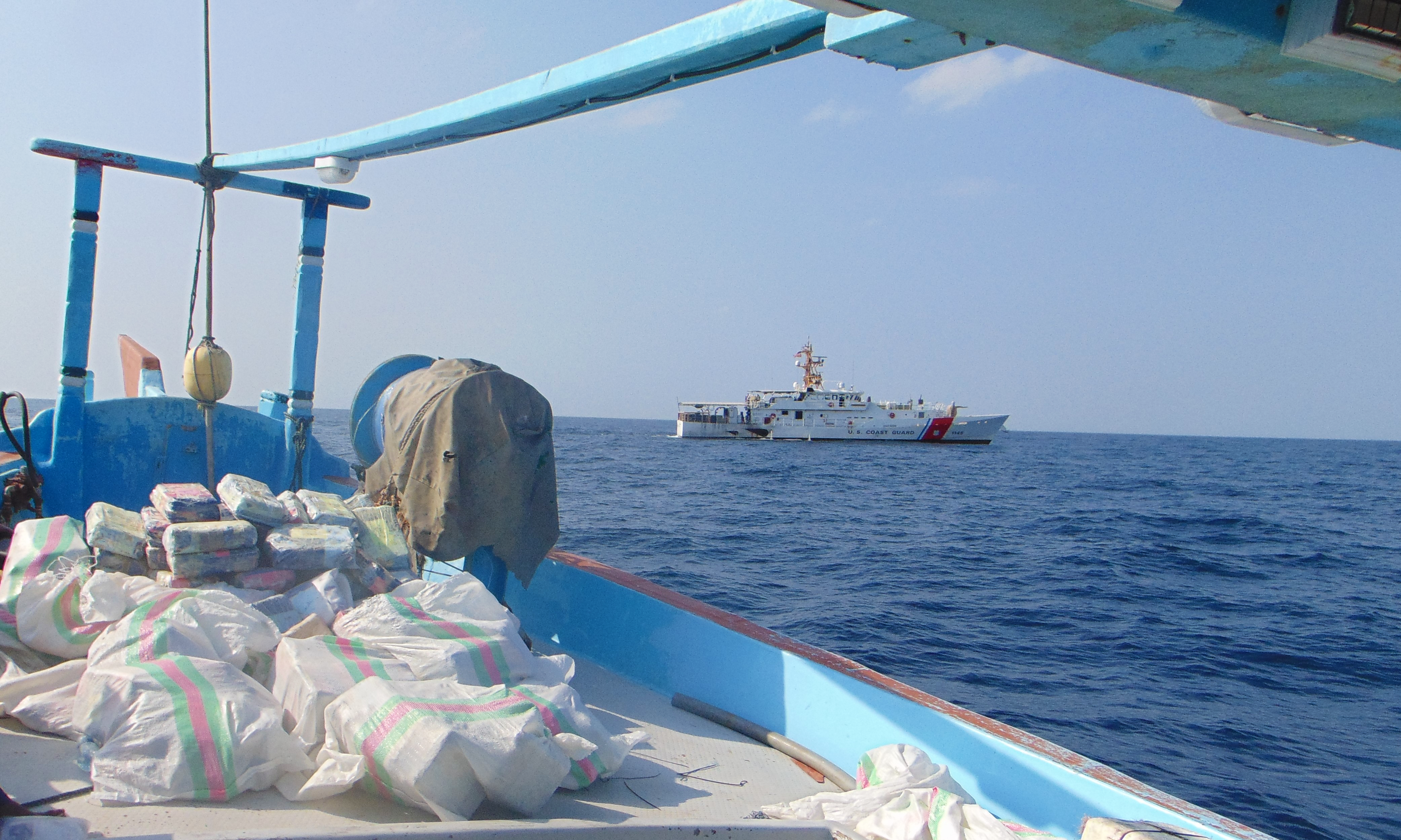 Coast Guardsmen from the Sentinel-class fast response cutter USCGC Emlen Tunnell (WPC 1145), seized 37 kilograms of heroin, 187 kilograms of methamphetamine and five kilograms of cocaine from the vessel following a search. Following the seizure, the Emlen Tunnell team released the dhow and disposed of the illicit drugs.