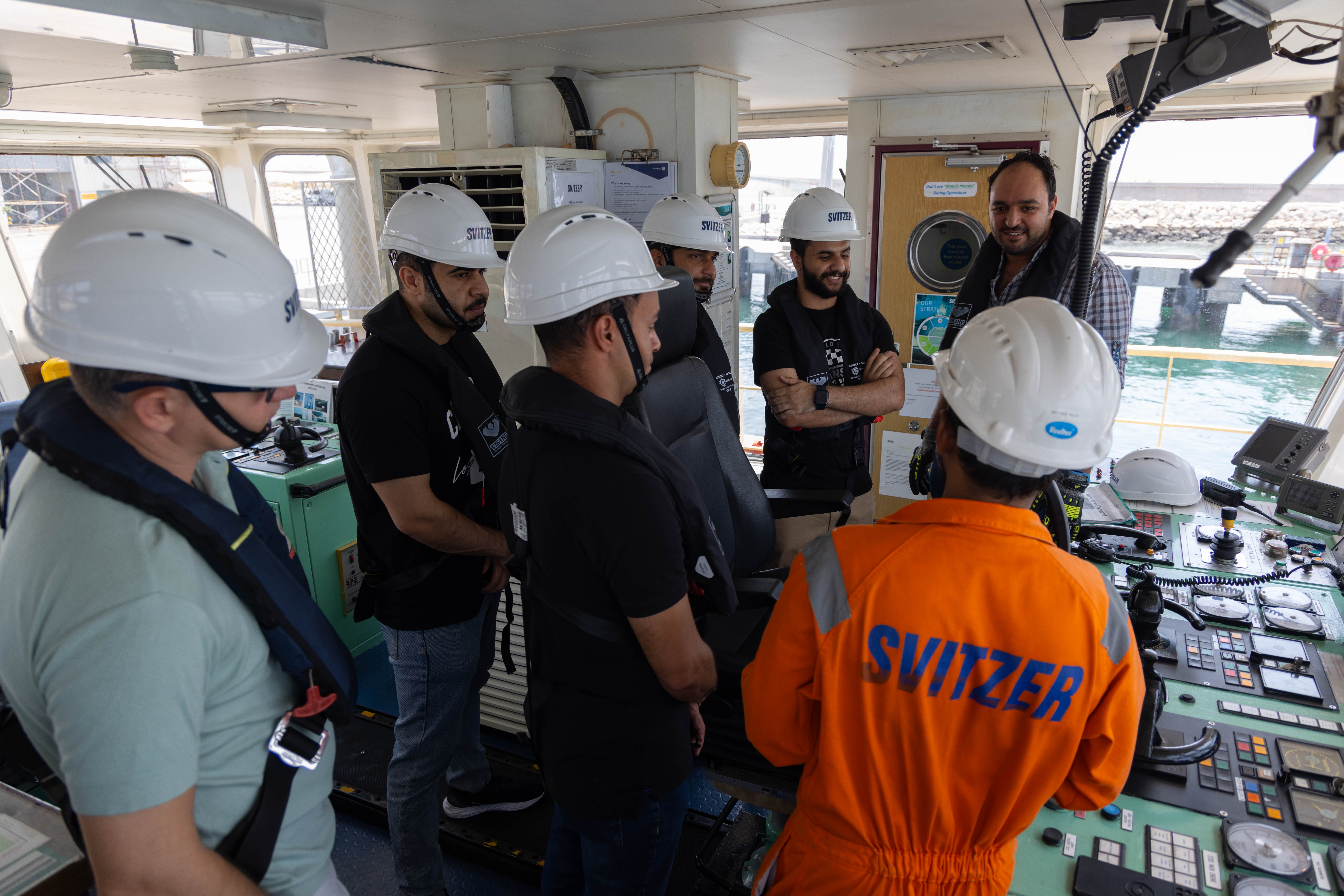 Day one was an off-base visit to Svitzer, a company who focus on safety and support at sea, their focus is on sustainable towage in and out of port. The team was able to share and demonstrate their knowledge on how they operate tugboats, safety procedures on board and man overboard drills. While the CMF team were at Svitzer, they were given the opportunity to operate their state-of-the-art navigation simulator which allows the user to experience what it would be like to pilotage a ship in and out of port.