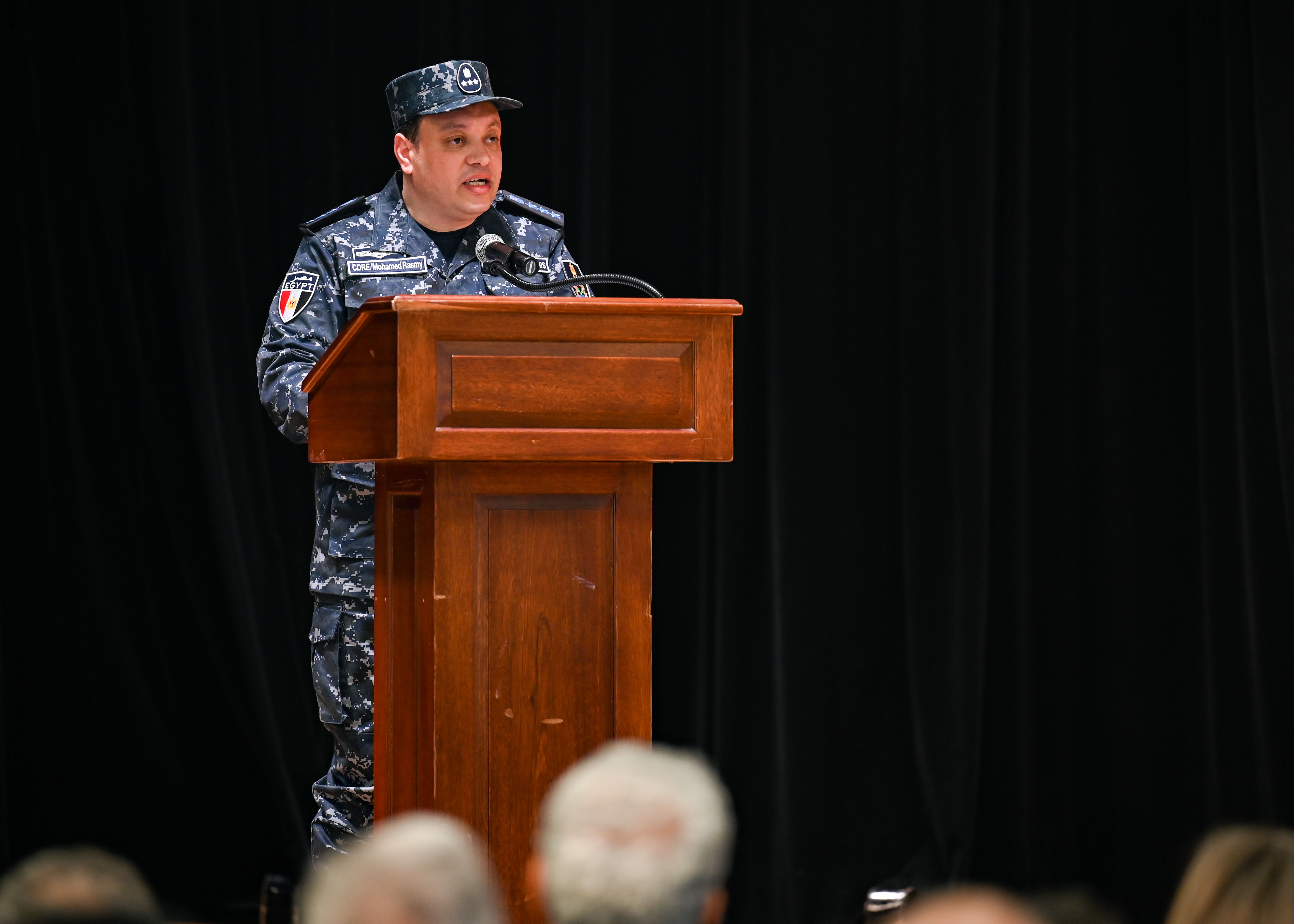 “In CTF 153, our role has been to shine a light on the unseen – to find those who hide in the shadows and who exploit that darkness for just one reason – because they profit from it,” McKee said during his remarks. “We have recently witnessed the consequences of long shadows over the sea. From spikes in shipping costs inflating the price of our daily needs, to the narcotics smuggled across the ocean and into our cities. Uncertainty and insecurity at sea here, reaches right into homes across the world.”