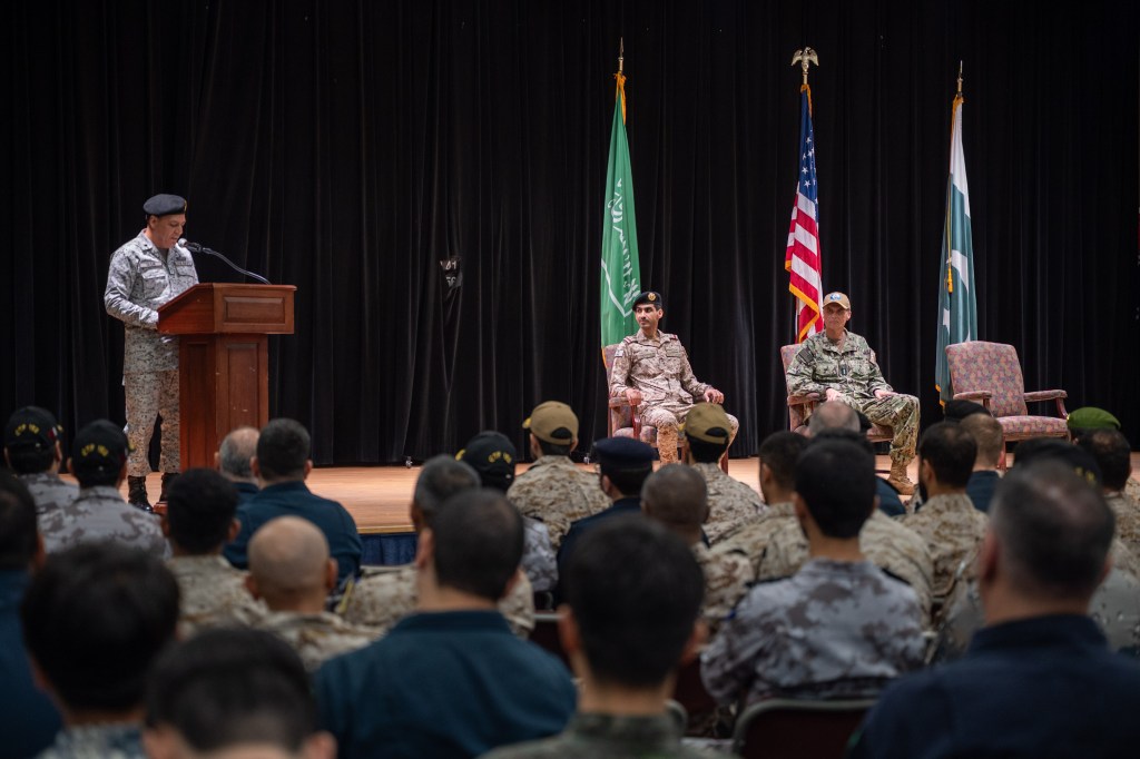 MANAMA, Bahrain (Jan. 28, 2026) — The Pakistan Navy assumed command of Combined Task Force (CTF) 150, a multinational maritime task force, from the Royal Saudi Navy during a change of command ceremony, presided over by U.S. Navy Vice Adm. Curt Renshaw, commander of Combined Maritime Forces (CMF), onboard Naval Support Activity Bahrain, Jan. 28.