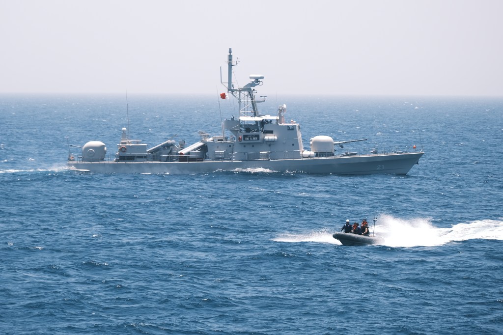 On the same day, the United States Navy and the Royal Bahraini Naval Forces conducted the same scenario in a different area of the Arabian Gulf.